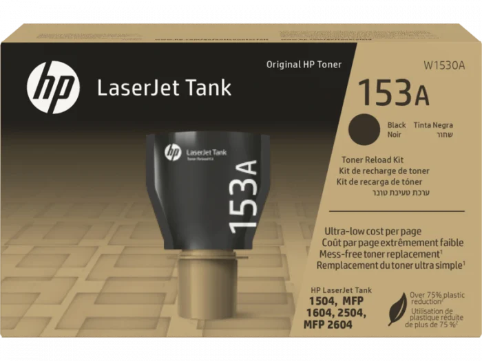 Kit de reîncărcare toner negru HP 153A original, 2500 pagini este soluția ideală pentru imprimarea de documente de calitate laser, fără cartușe. Acest kit de toner ușor și fără scurgeri vă permite să reîncărcați nivelul de toner în 15 secunde, fără stres Cu acest kit de toner, puteți imprima mii de pagini cu un cost ultra-scăzut pe pagină Acest kit de toner este compatibil cu imprimantele HP LaserJet Tank 2504dw și HP LaserJet Tank MFP 2604sdw, care vă oferă fiabilitatea și inovația HP.