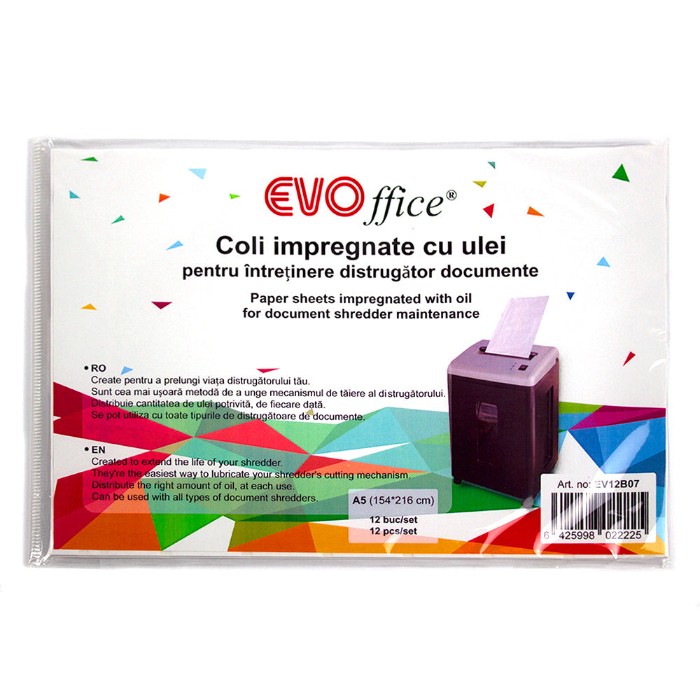 Coli A5 impregnate cu ulei pentru intretinere distrugator documente, 12buc/set EVOffice