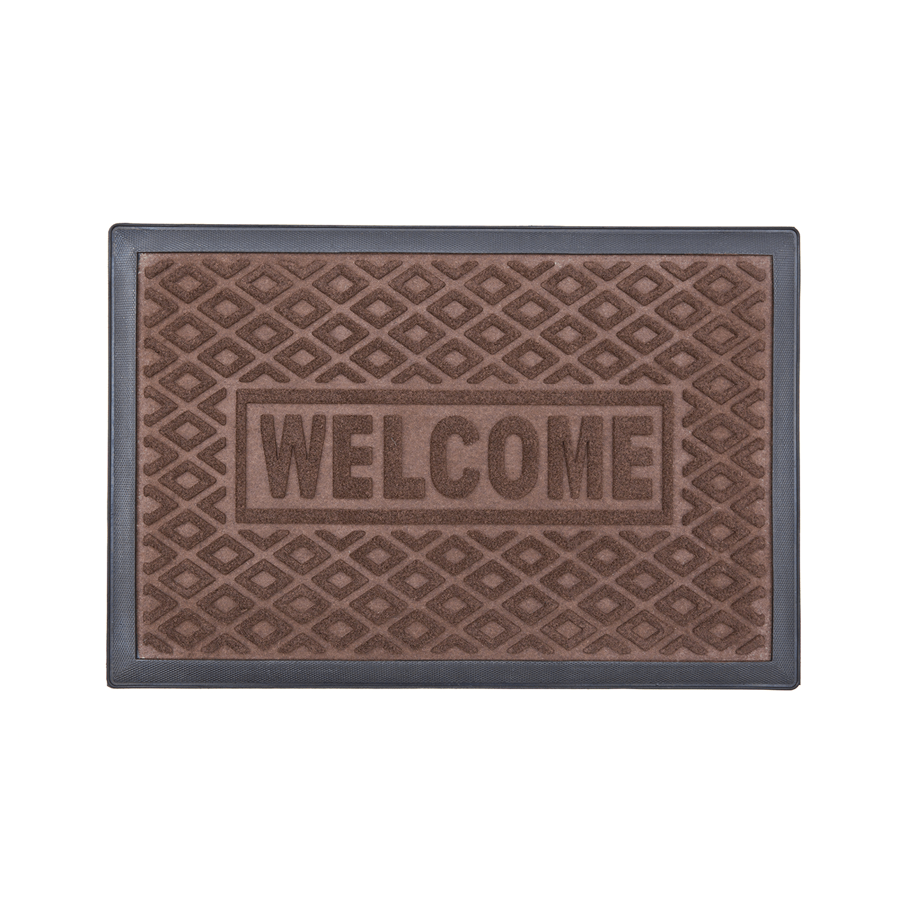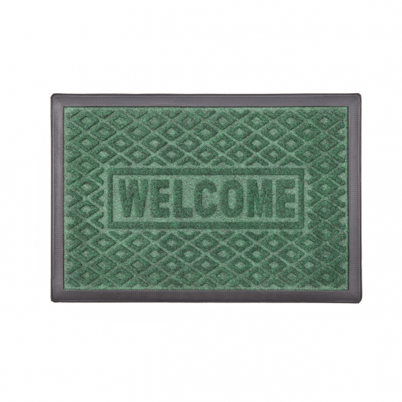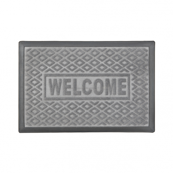 Covorașul este imprimat cu mesajul „WELCOME”, adăugând o notă de ospitalitate imediată. Este disponibil în mai multe modele și culori – negru, gri, maro, roșu, albastru – pentru a se integra ușor în orice decor. Bordura cu motive geometrice sau modelul cu urme de pași creează un aspect îngrijit și decorativ, potrivit atât pentru stiluri moderne, cât și clasice.