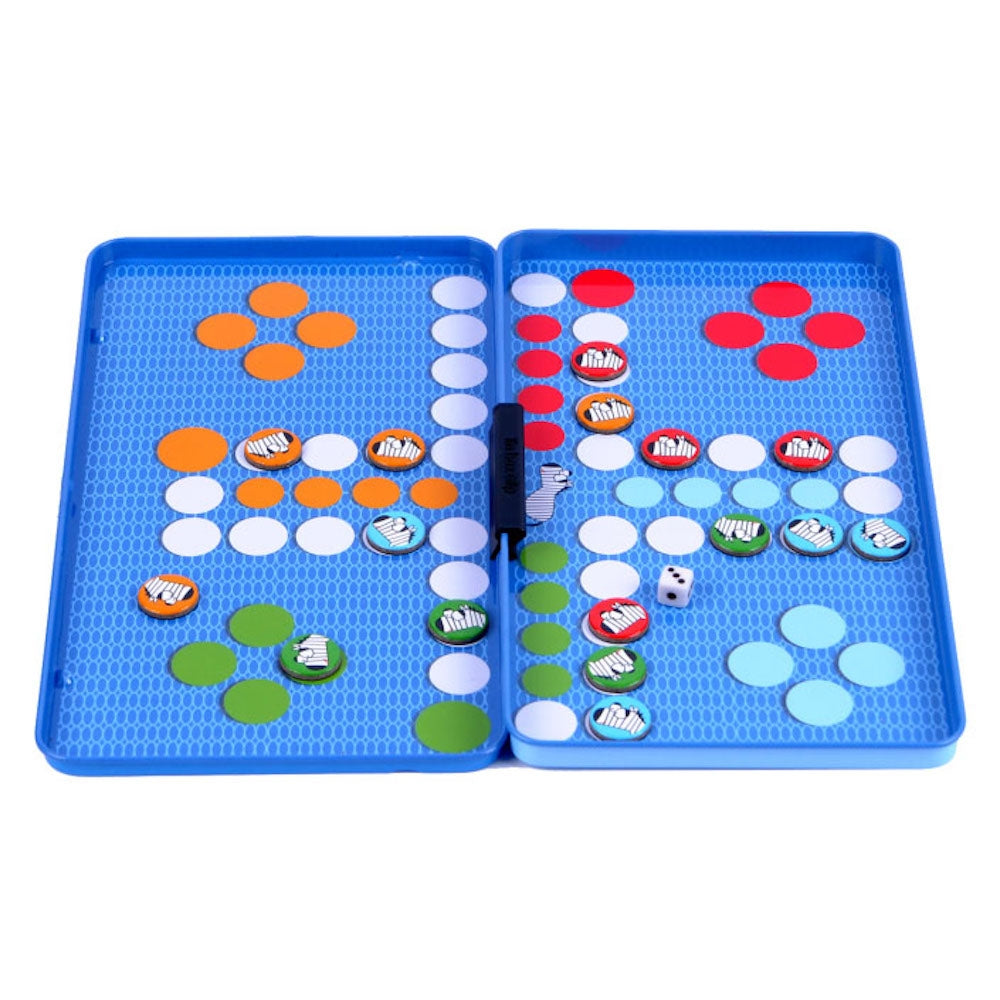 - Mod de joc: Fiecare jucator are 4 piese de aceeasi culoare in coltul tablei. Cel care arunca un zar mai mare incepe jocul. Jucatorul trebuie sa arunce un 6 ca sa poata intra cu o piesa (pe pozitia de start). Ori de cate ori jucatorul arunca un 6 poate intra cu o noua piesa pe tabla. La fiecare aruncare, jucatorul alege piesa pe care o muta pe tabla in sensul acelor de ceasornic. Jucatorii arunca pe rand, dar de fiecare data cand dau un 6 primesc o tura in plus. Capturarea si blocarea: Cand o piesa ajunge pe un camp unde sta o piesa adversa, acea piesa se scoate si se-ntoarce pe pozitia de start a sa. Cand o piesa ajunge pe o piesa de aceeasi culoare, cele doua piese formeaza un bloc. Un bloc nu mai poate fi scos de o piesa adversa! Dupa ce o piesa face o tura completa trebuie sa intre in casa (pe campurile de aceeasi culoare cu piesa). Piesa poate intra in casa doar pe un cerc liber si doar cu o aruncare exacta pe acel camp. Daca iese un numar mai mare si nu aveti alt pion pe care sa il mutati, veti astepta pana cand aruncati numarul potrivit.
