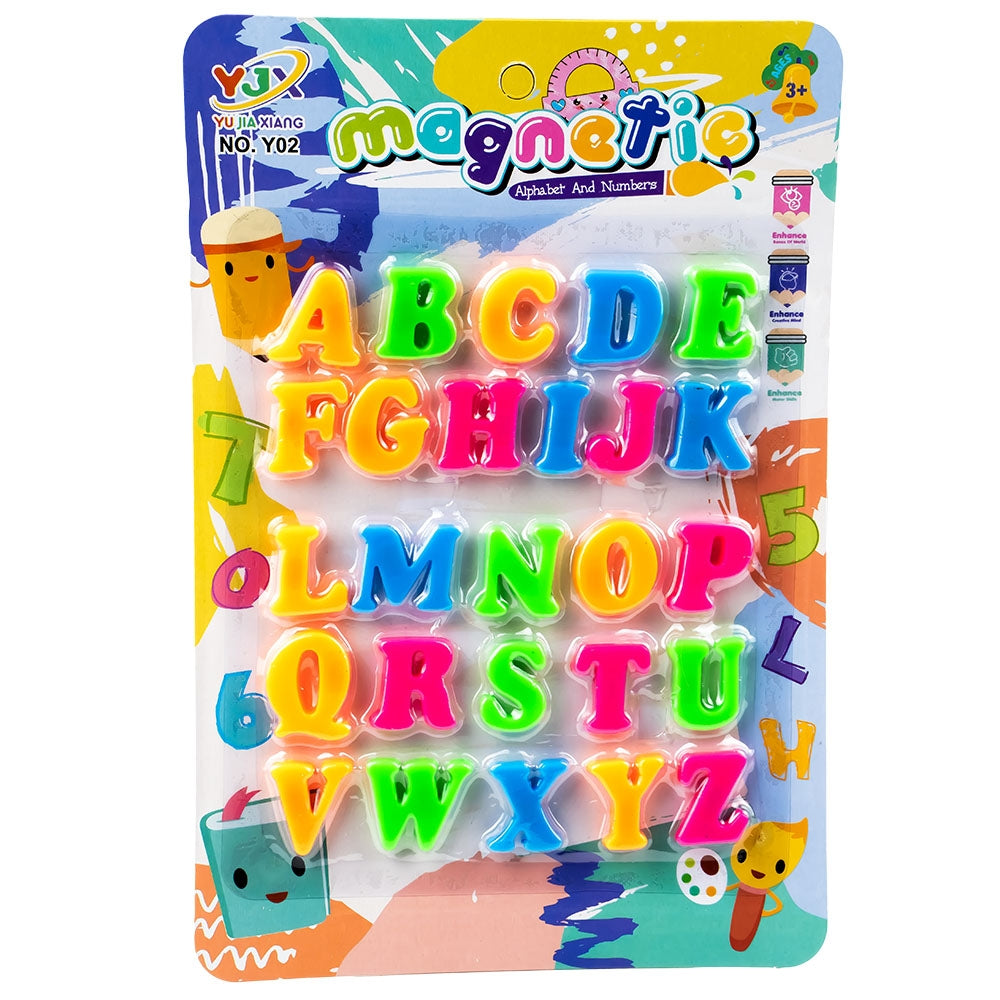 - Setul contine 26 litere majuscule magnetice, ajutandu-i pe copii sa faca primii pasi in lumea alfabetului. Acesta este un joc foarte util pentru uz individual sau pentru utilizarea in colectivitati, gradinite, scoli, activitati after-school sau locuri de joaca.